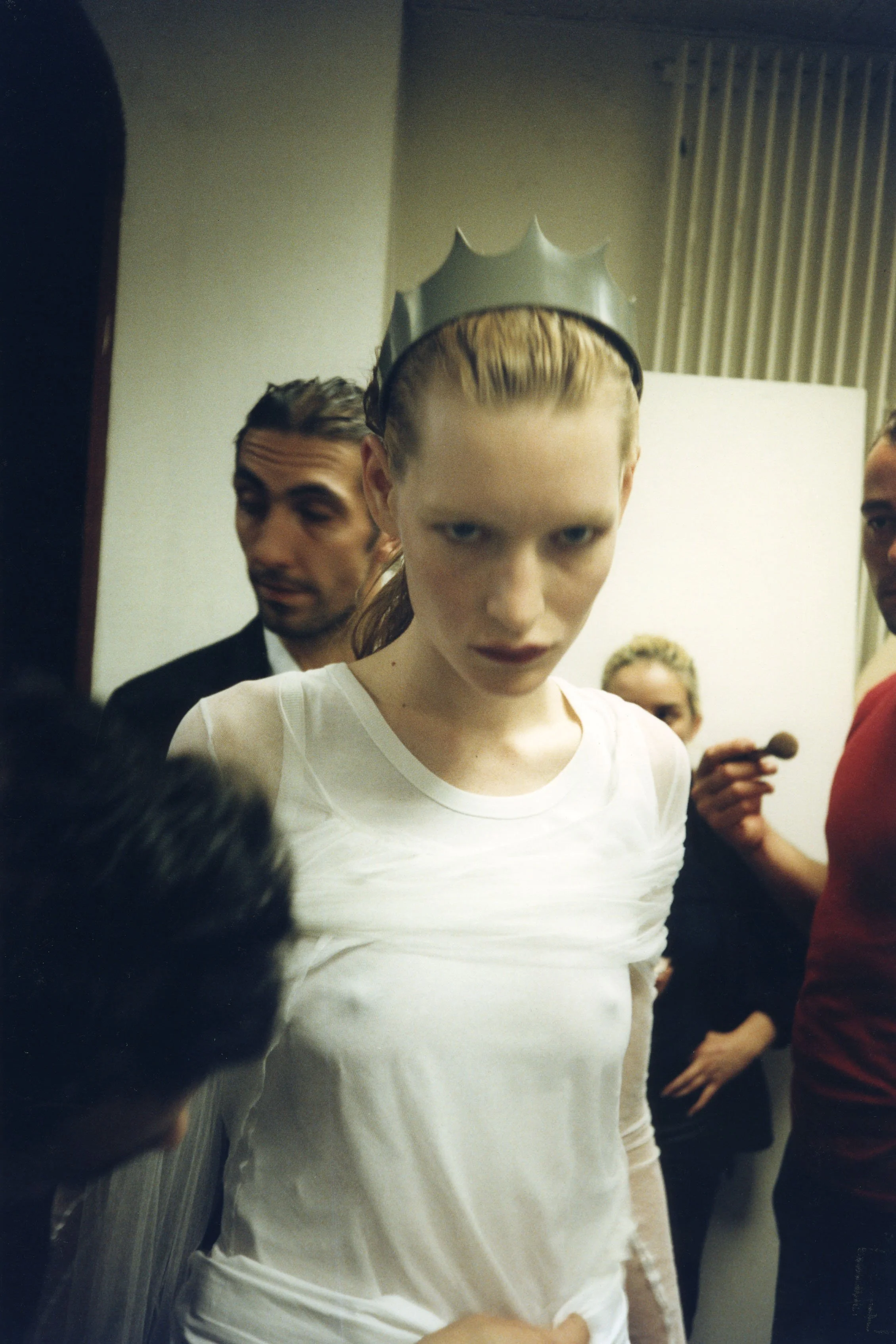 Backstage photograph of Kirsten Owen by Juergen Teller