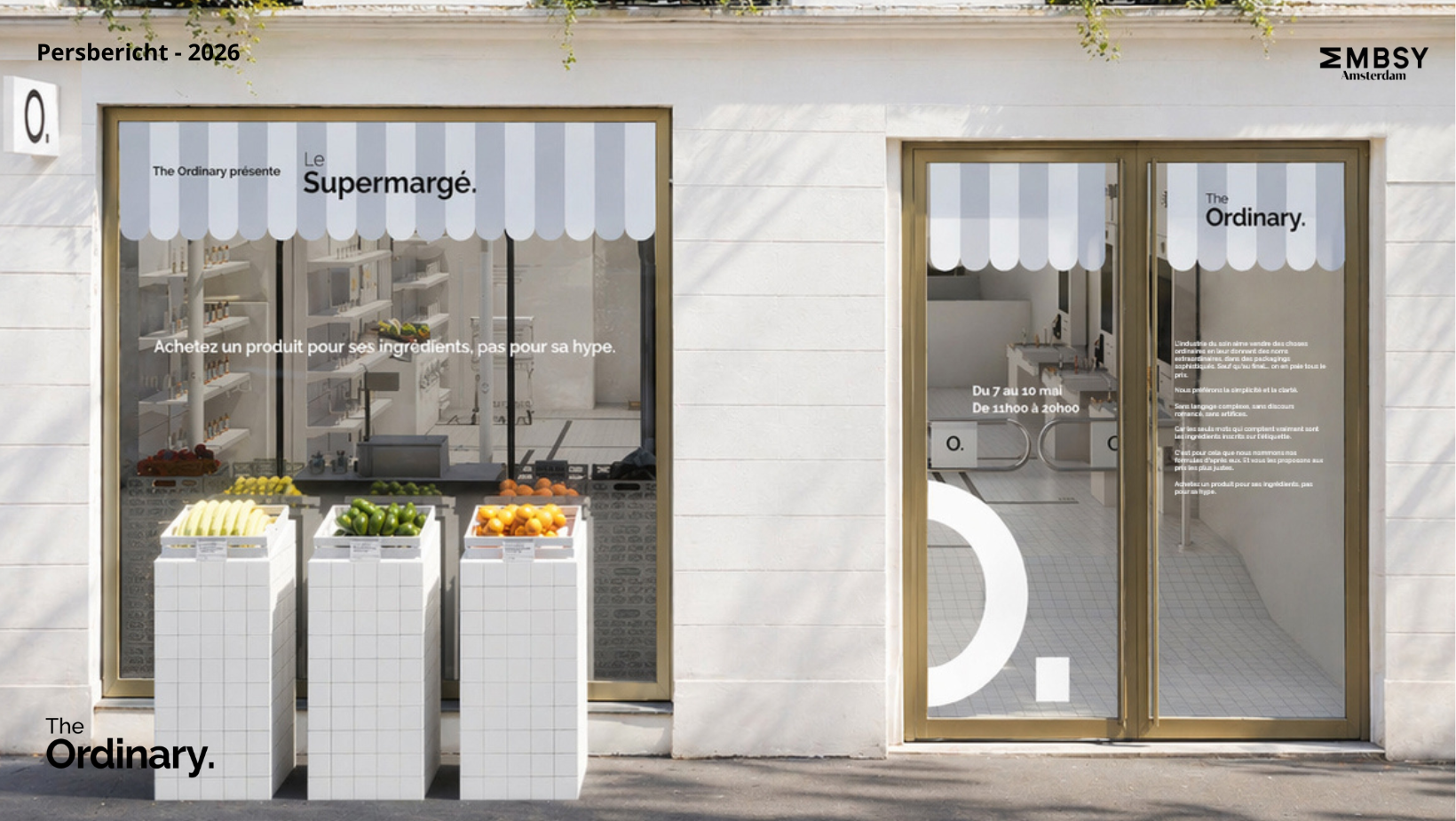 Would you buy a banana for €85.70? Launching across six major cities worldwide, The Ordinary’s Markup Marché is not your average supermarket. Replicating the recent trend of ‘luxury’ supermarkets, the store has that classic new-age heightened minimalism that immediately screams gentrification. But as you enter the store, its motives suddenly become clear. Fancy marketing buzzwords and ridiculously high price-points are plastered on common grocery items, imitating absurdly deceiving beauty industry lingo. Known for their fair prices and simplistic approach to products, The Ordinary’s voice positions them as the ideal critic— serving as a reminder to not always trust an ad’s justification of a high price tag (especially in the beauty world!).