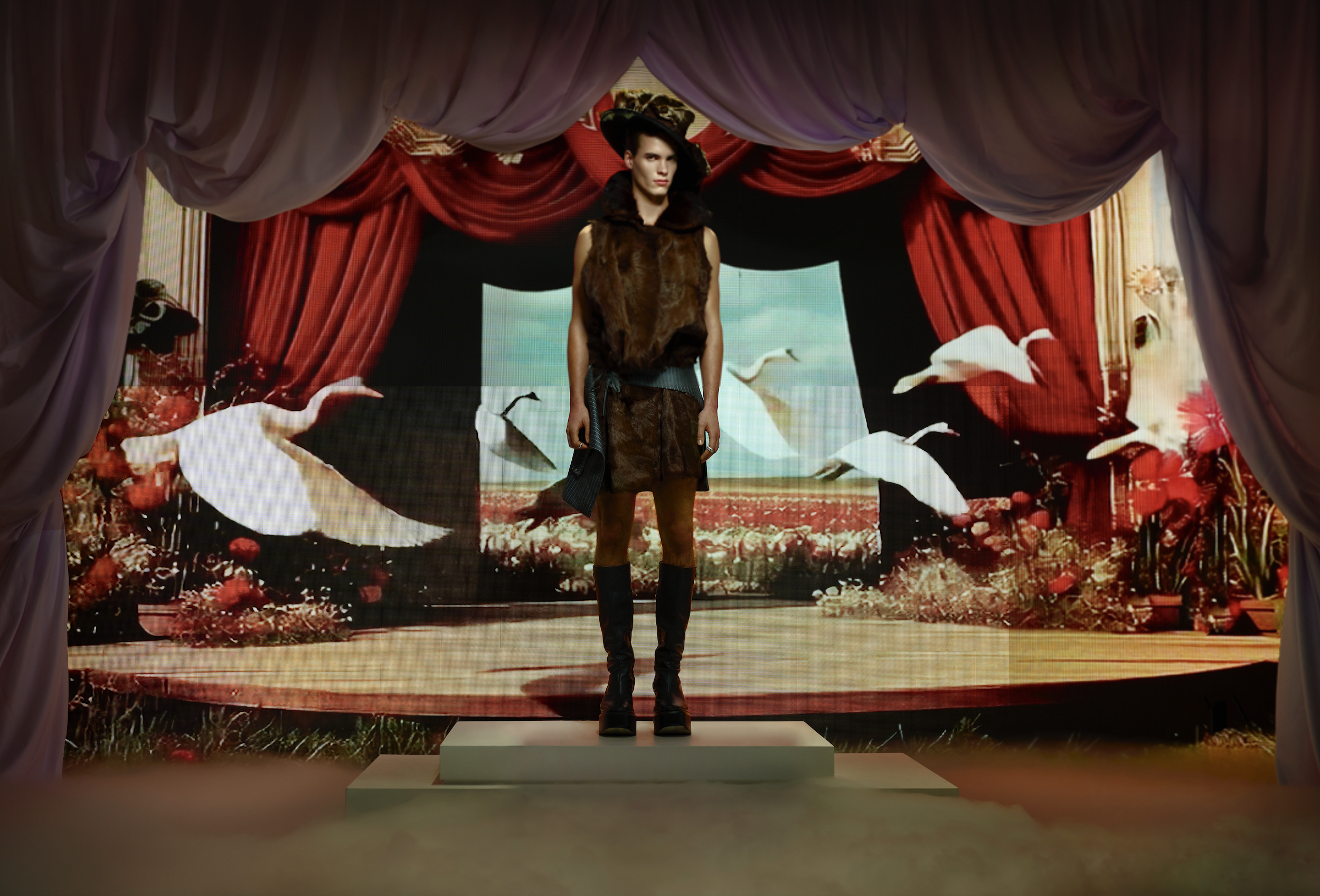 Being stripped of place, language, and familiarity creates fractures in a person, it multiplies you. That fragmentation is made strikingly literal in a look developed with artist Esmay Wagemans, where additional arms emerge from the body. It remains unclear whether the figure is being restrained or desperately trying to hold herself together?