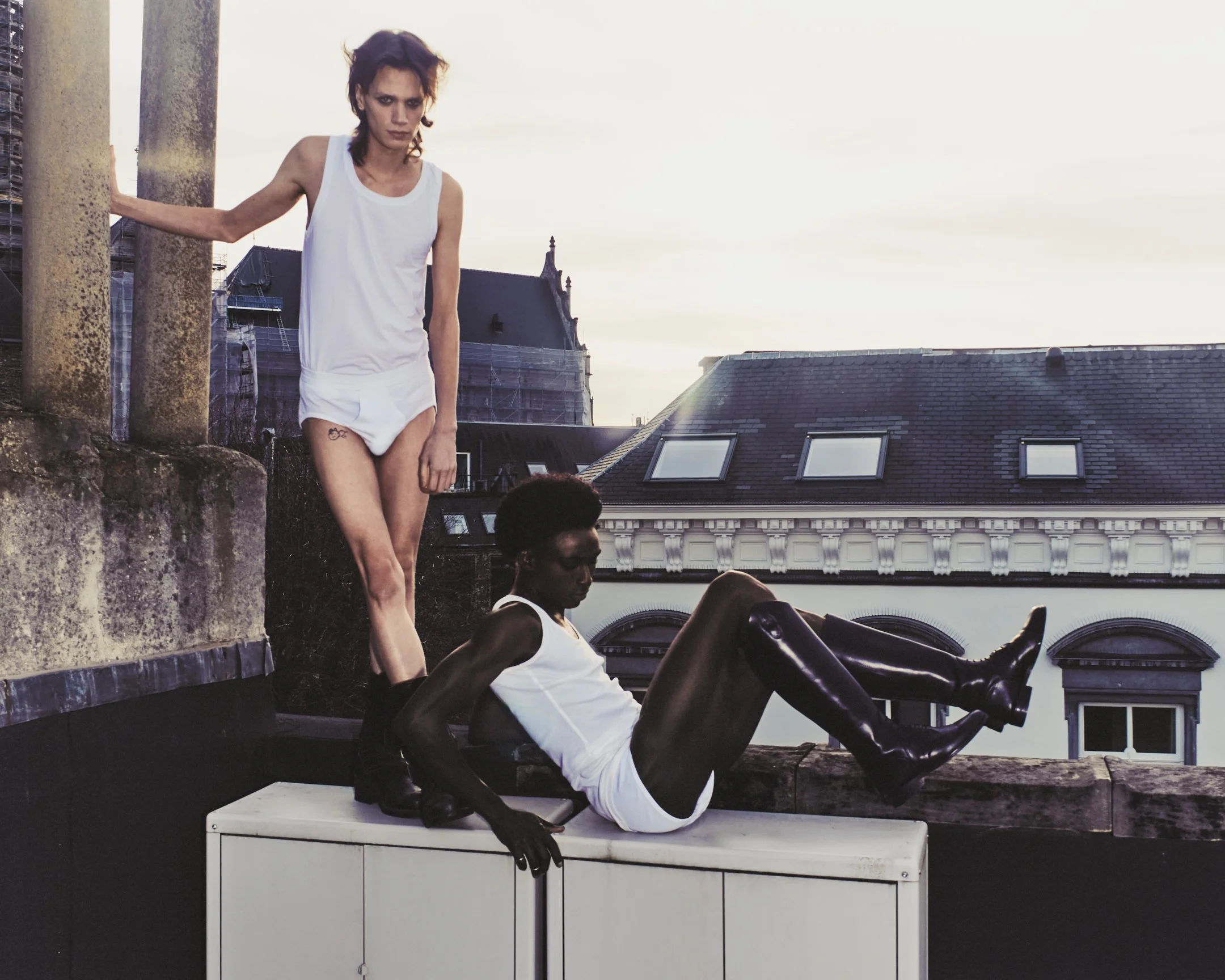 Blisters, captured by Sieme Hermans, unfolds as a bold exploration of gender fluidity and self-expression. Modeled by Godwin “Wino” Dekou & Jonas Vermeylen, the pair move with dauntless poise, blurring boundaries through a striking visual choreography that feels both daring and playful.