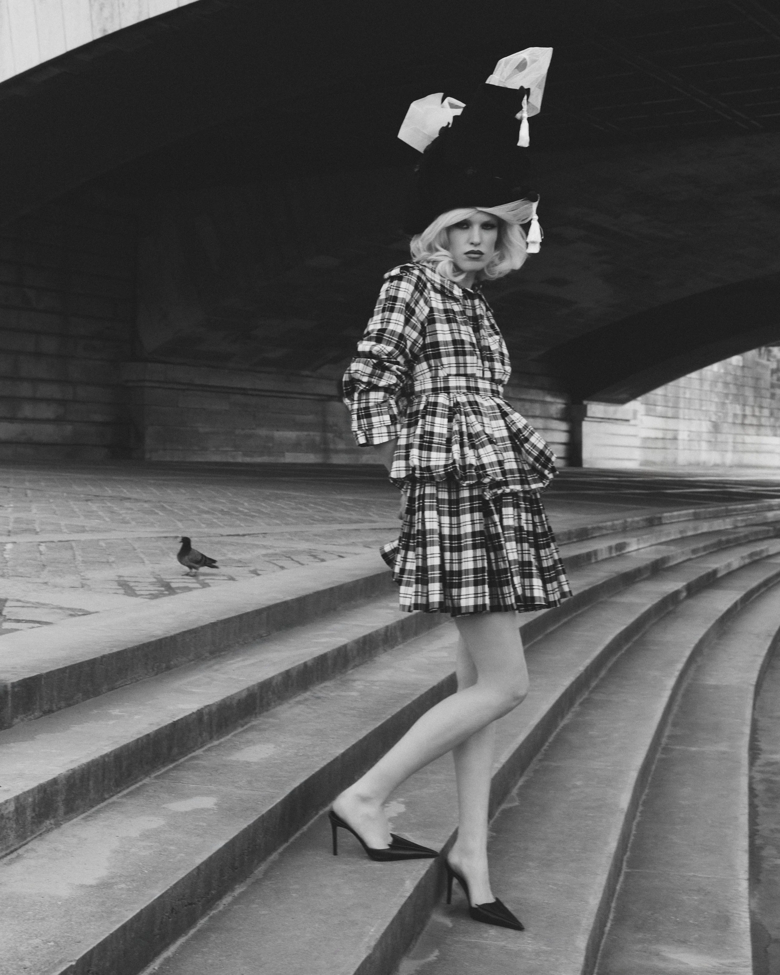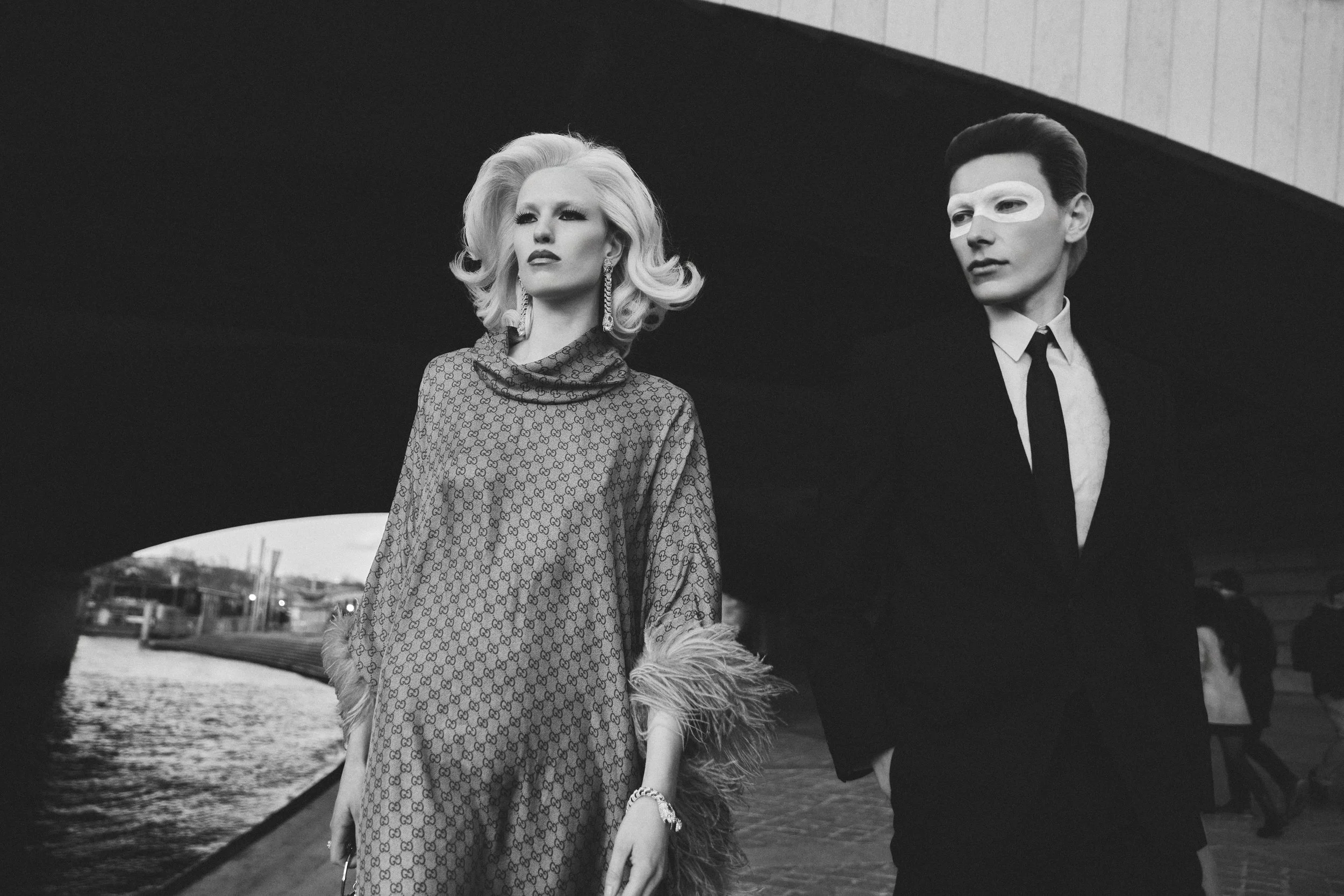 In today’s digital editorial, photographer Luca Stefanon brings a sense of tasteful theatricality. Set against bustling Parisian streets and strolls along the Seine, each moment captures elegance paired with a dramatic edge.