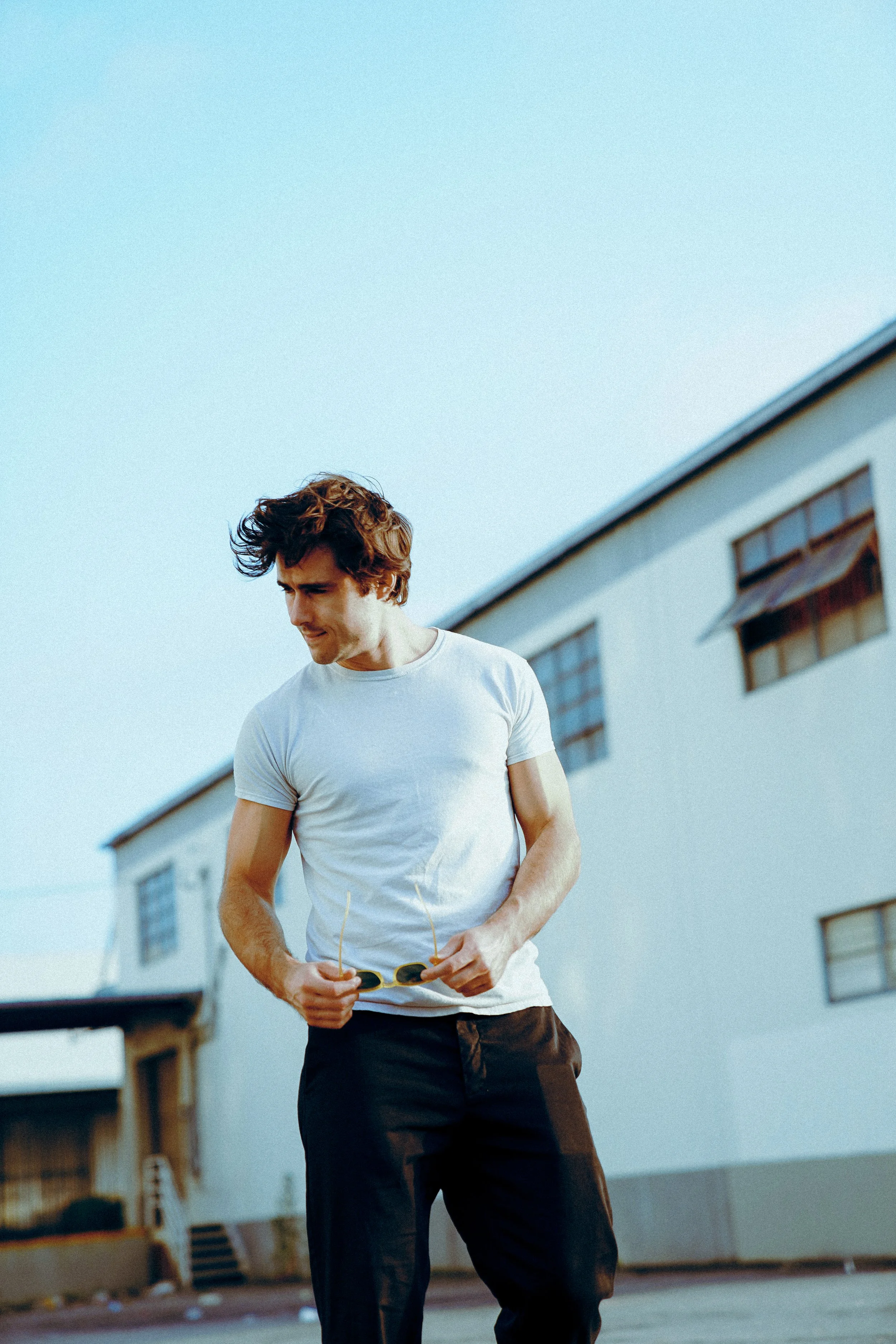 The tone of the piece was pretty clear on the page. Christina Voros, our director and cinematographer, is a longtime collaborator of Taylor’s, and so we knew we were in a deft pair of hands. Most of the conversations in prep were about the given circumstances of these characters, and the disparate worlds they come from.