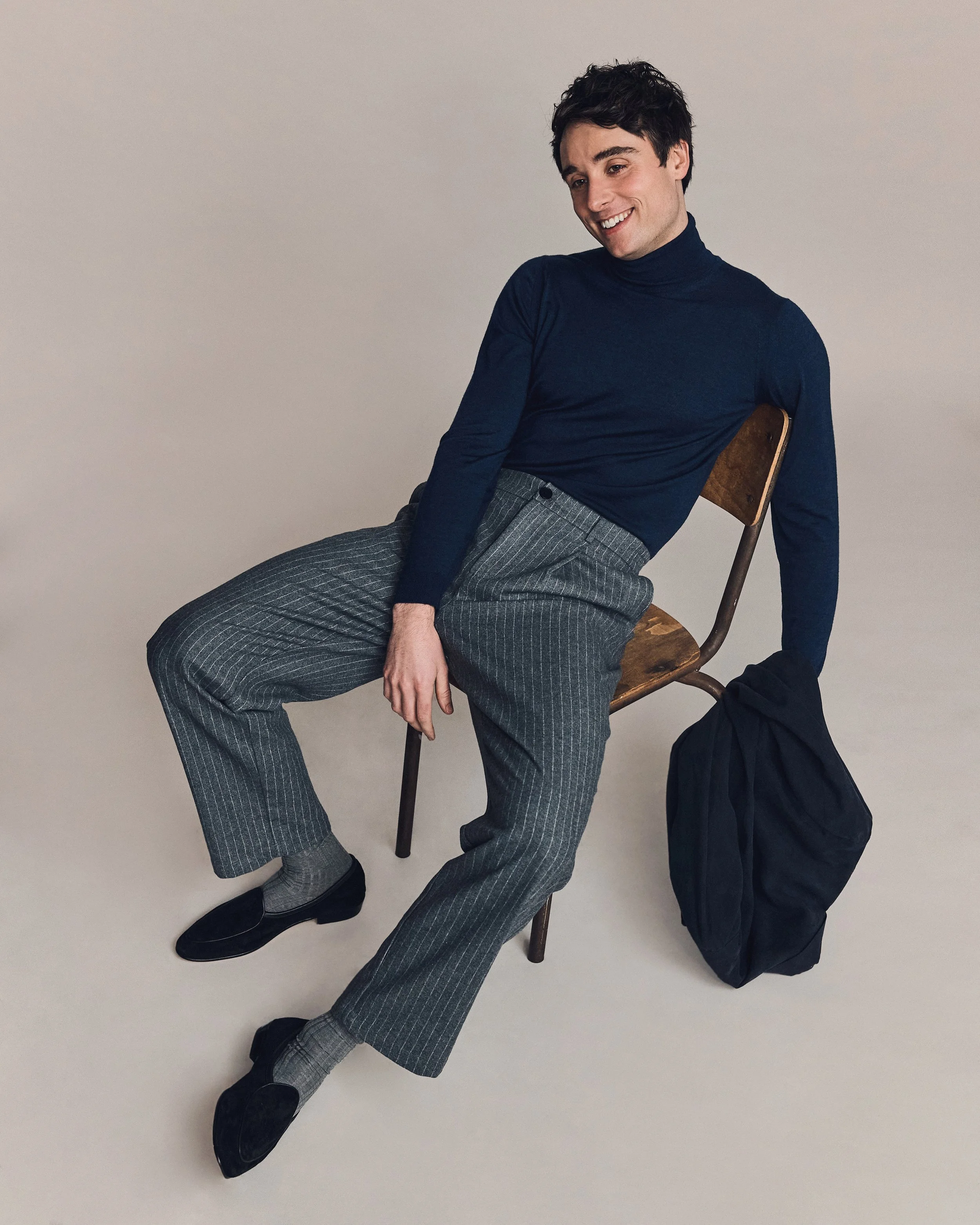 You probably can’t find two more diametrically opposed worlds as Bridgerton and American Psycho. I love the challenge of oscillating between the two. And I think that is a feature of my work and my career as an artist that has always been immensely important to me. I hate still waters. I like shapeshifting and changing and trying new things all the time. The moment something becomes too easy or too much of a routine, I want to run towards something else that gives me that slightly nervous buzz, that fear, that voice in the back of my head that goes “So you think you can do this?”. I love surprising myself and surprising others. You’re flexing such different muscles when doing American Psycho on stage compared to Bridgerton on screen. There is so much to learn from that. There’s a muscularity and discipline to stage work that is so invigorating and immediate. It is a lifestyle as much as it is a job. And by contrast, making a TV show like Bridgerton feels sometimes like a slow-burn jigsaw puzzle painted with a fine brush, which takes months, even years, to arrive at the final picture. They say theatre is like having sex, and TV is like having a baby. I suppose that’s quite a good analogy, but I’ve only done one of those two things so probably not the best authority.