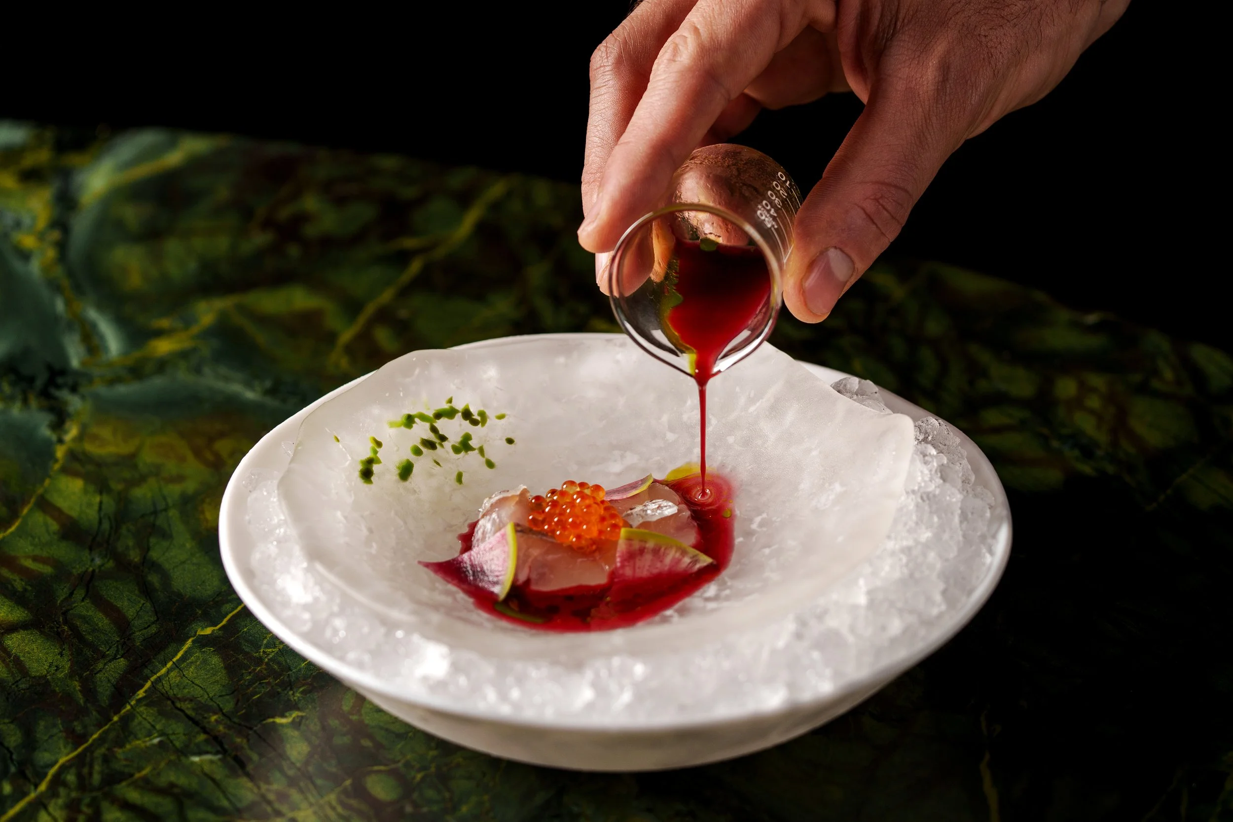 Rather than working to a calendar, TUJU operates across four overlapping “seasons” — humidity, rain, wind and drought — allowing ingredients to appear, disappear and return when they reach their peak. The rainy season menu, for instance, leaned into produce shaped by humidity, from tomato to mango and lamb, but it functions less as a standalone moment and more as part of a continuous, evolving system.